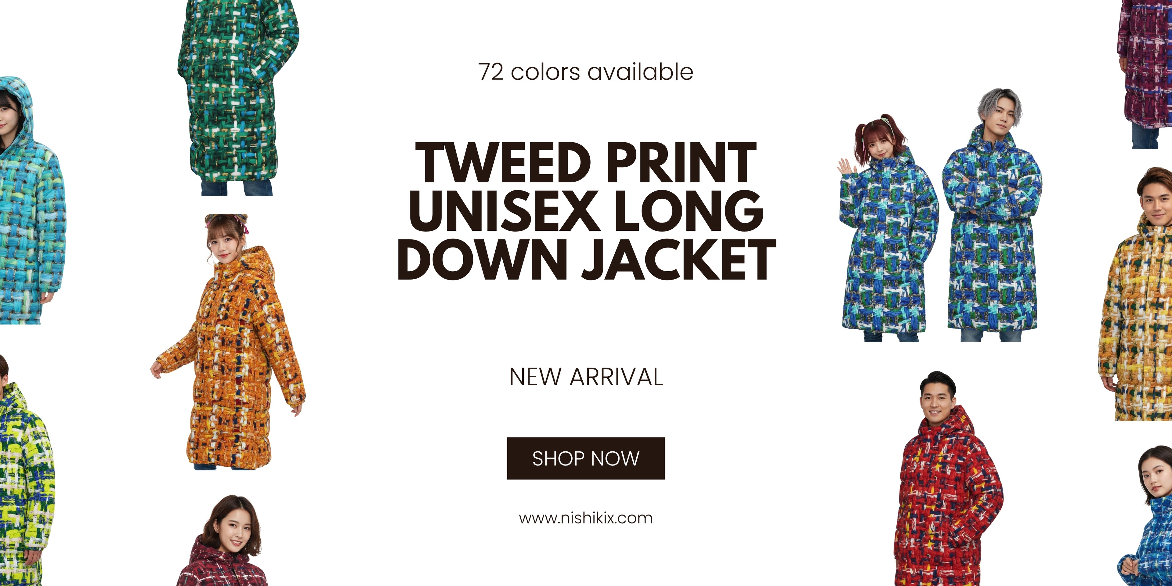 071 NISHIKIx Tweed Print Unisex Long Down Jacket - Ivory Black